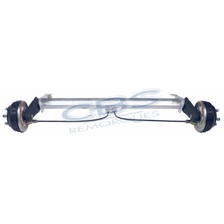 Notre essieu complet pour remorque est un modèle freiné de marque ALKO qui s’adapte sur des remorques CBS M0950F doublet jetski de 1250 KG de PTAC.