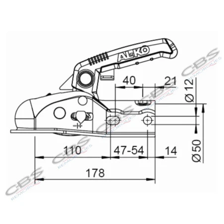 Cette tête d’attelage Alko AK270 s’adapte sur les rotules de 50 mm.